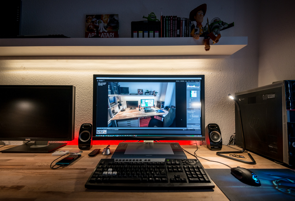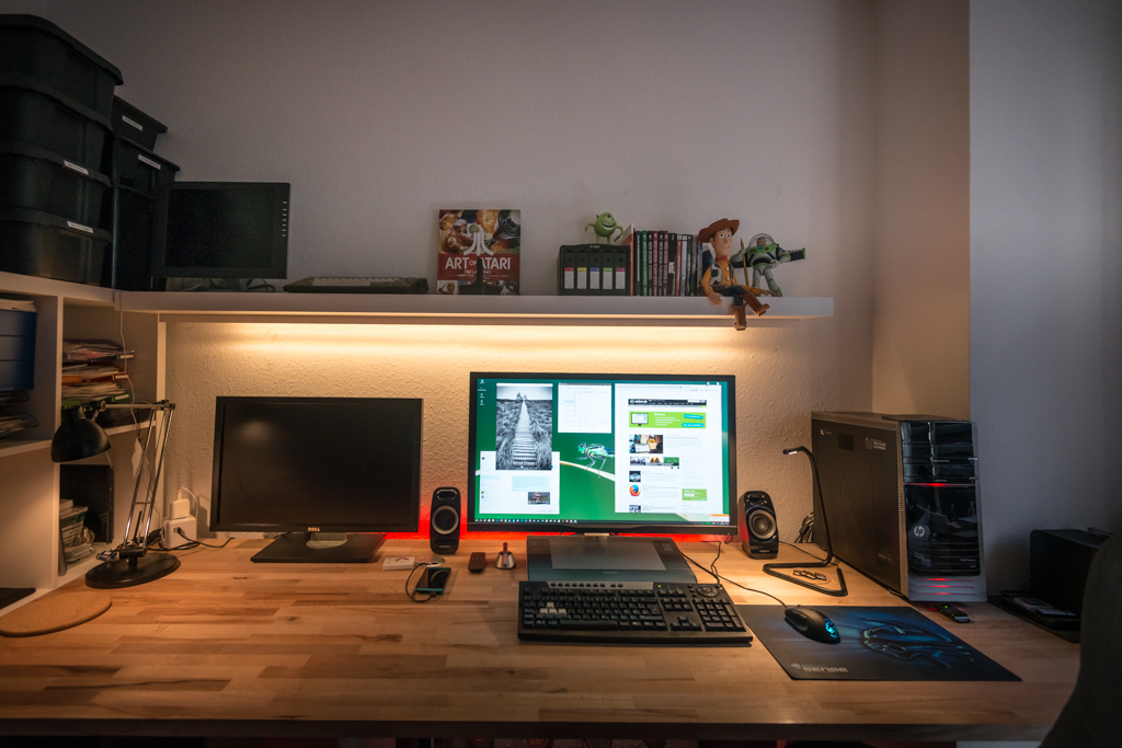danke, ich hasse es nämlich Hauptbeleuchtung zu nutzen und mag eine angenehmere ambiente Lichtumgebung bei der Arbeit (oder bei Spiel). Darf halt nicht zu dunkel aber auch nicht zu hell sein, deswegen die kleineren Lampen...