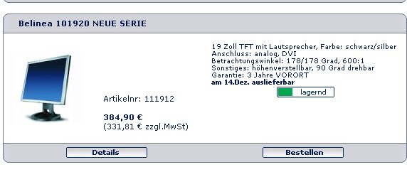 Da ich mittlerweile seit über 5 Jahren vor dem selben Display sitze (Belinea 101920@1280x1024), möchte ich nun doch mal was neues...