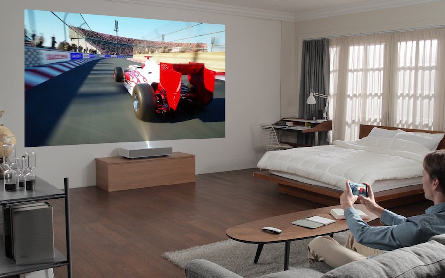 Durch die Ultrakurzdistanz-Optik reicht dem LG HU85L bereits ein Abstand von etwas mehr als 5 cm für eine Darstellung mit 90 Zoll Bilddiagonale. Bei einem Abstand von knapp 18 cm liefert der Projektor eine Bilddiagonale von 120 Zoll. Das Produkt ist laut LG extrem platzsparend und kinderleicht einzurichten.