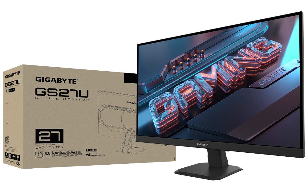 Gigabyte Technology Deutschland führt auf seiner Website den neuen Gaming-Monitor GS27U. Der 27-Zöller wartet mit IPS-Technologie, 4K-Auflösung (3840 x 2160 Pixel), 160 Hz Bildwiederholfrequenz und DisplayHDR 400 auf. Das Kontrastverhältnis beträgt 1000:1, die Farbtiefe 10 Bit (wahrscheinlich 8 Bit + FRC), die typische Leuchtdichte 350 cd/m² und die Leistungsaufnahme 34 Watt. Der sRGB-Farbraum wird zu 127 Prozent abgedeckt.