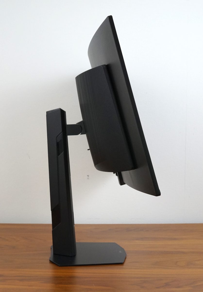 Der MSI MPG 341CQR QD-OLED X36 bietet aus ergonomischer Sicht neben der Veränderung des Neigungswinkels (-5°/+15°) eine Höhenverstellung (11 cm) und eine seitliche Drehfunktion (30° nach links und rechts). Lediglich eine Pivot-Funktion ist nicht vorhanden, was aufgrund der Krümmung auch keinen Sinn ergeben würde.