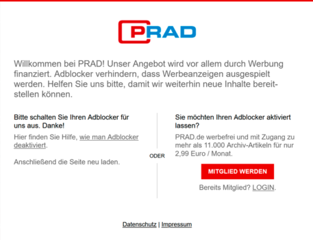 Sie haben Ihren Adblocker abgeschaltet und PRAD.de auf die Whitelist gesetzt und sehen unseren Hinweis zur Deaktivierung des Adblockers immer noch? Wir bedauern die Unannehmlichkeiten und möchten Ihnen einige Gründe nennen, woran dies liegen kann.
