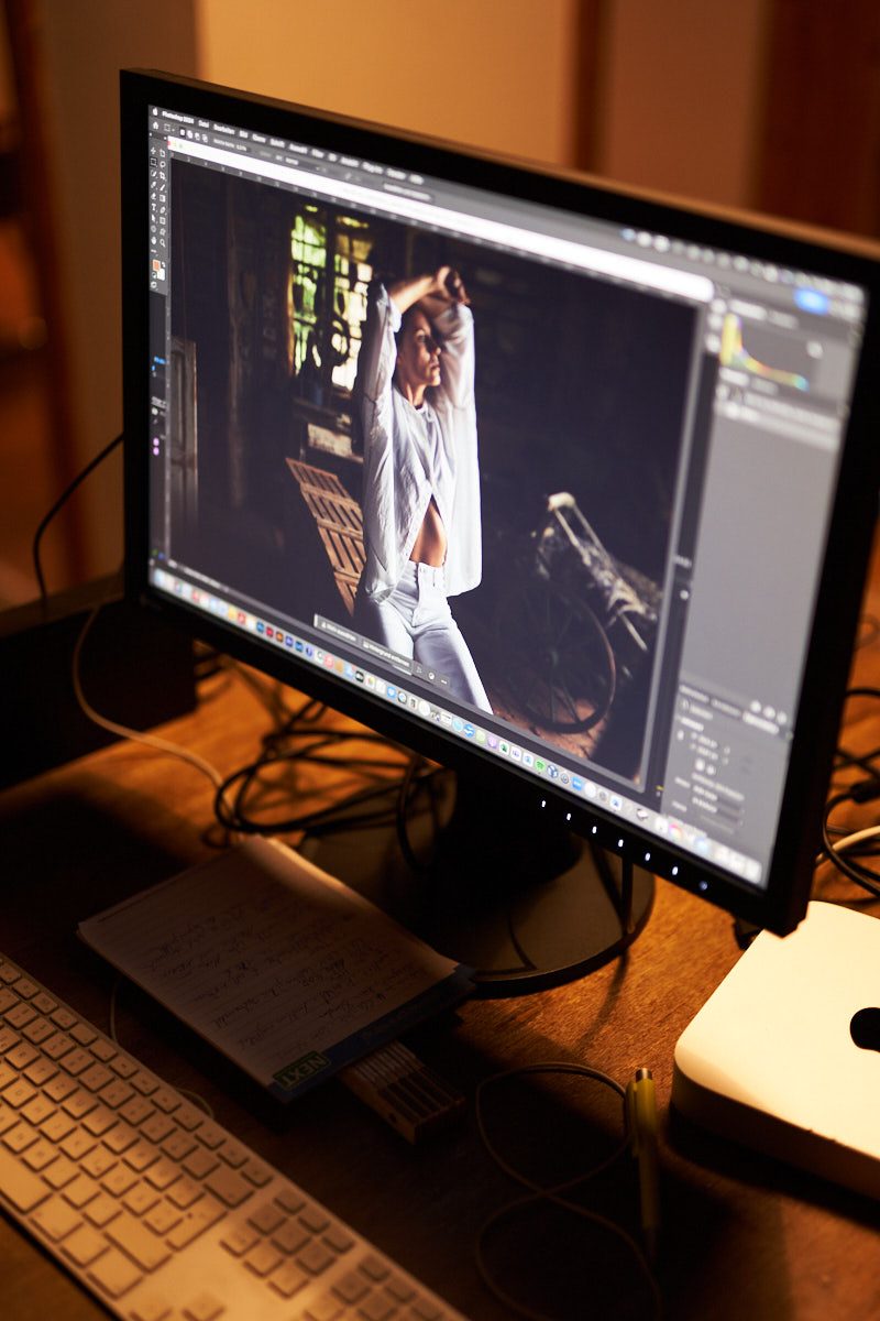 Wie differenziert der EIZO CS2400S die Darstellung von Tiefen ermöglicht, konnte ich in Capture One und Photoshop sehen. Bei der Bearbeitung eines Shootings, welches in einer sehr dunklen Location aufgenommen wurde, bei der nur das Model durch ein großes Fenster beleuchtet wurde, konnte man sehr gut erkennen, wie gut der Proband selbst in dunklen Bereichen noch Strukturen und Details darstellen kann. Die LUT des Bildschirms mit einer Signalausgabe von bis zu 10 Bit (intern 16 Bit) vermeidet auch hier Tonwertabrisse oder Farbstiche.