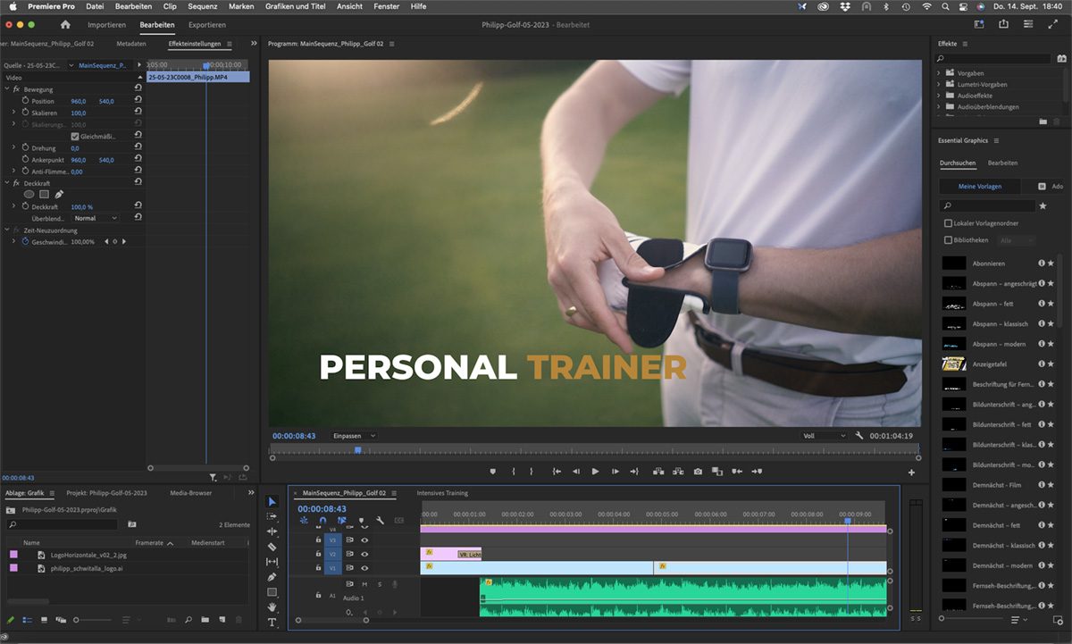 Bei Adobe Premiere und AfterEffects habe ich bisher keinen zweiten Bildschirm für Paletten und Fenster verwendet. Gerade in diesen beiden Programmen ist die zusätzliche Höhe des EIZO CS2400S hilfreich, da somit für die untereinander angeordneten Schnitt- und Programmfenster mehr Höhe zur Verfügung steht.