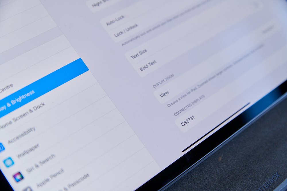 Ein Vorteil des CS2731 ist hier wieder sein USB-Typ-C-Anschluss. An ein iPad Pro angeschlossen, wird das Bild sofort gespiegelt und der Monitor vom Apple-Tablet mit Typbezeichnung erkannt. Zeichnen ist also möglich, auch Bildpräsentationen. Eine angeschlossene Tastatur am Monitor wird erkannt und ist vollständig nutzbar. Ein weiterer Vorteil dieses Anschlusses. Ganz nebenbei wird das iPad Pro dann auch noch aufgeladen. Eine Funktion, um das Bild zu erweitern, konnten wir leider nicht finden – es blieb also bei einer Spiegelung.