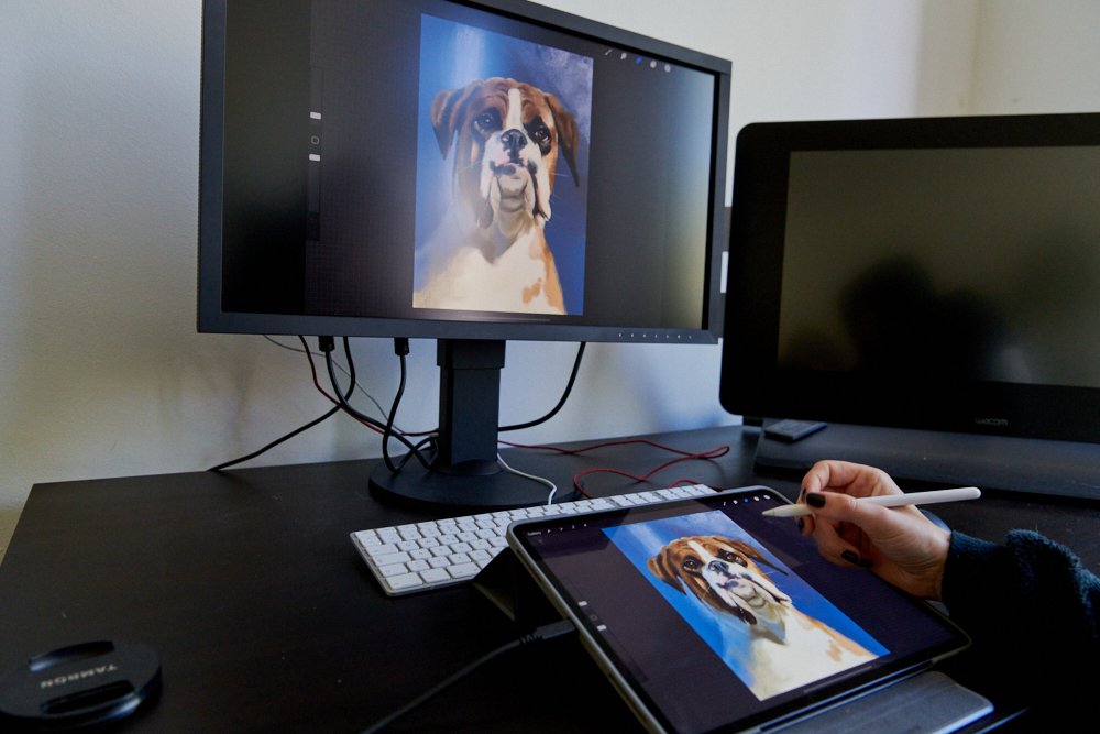 Die Frage, die sich uns beiden gestellt hat: Würden wir den EIZO austauschen mit einem unserer jetzigen Monitore? Für Jana ein Nein, mit einer Träne. Denn obwohl die Bildqualität dem Cintiq gegenüber klar überlegen ist, sind das Zeichnen und Illustrieren direkt am Display nicht zu ersetzen. Es gilt dabei aber zu bedenken: Das ist nicht der vorgesehene Einsatzzweck des Bildschirms. Würde Jana nicht illustrieren, würde der Monitor sofort und permanent seinen Platz am Schreibtisch finden – zu gut sind das Bild und die Farbverbindlichkeit.
