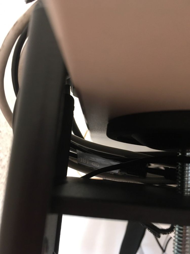 Etwas enttäuscht bin ich vom Standfuß. Schon beim Anschrauben an die Tischplatte konnte ich feststellen, dass dieser nicht ganz im Lot steht. Leider hat er auch Spiel. Natürlich darf er nicht 100 % fest sein, da er sonst nicht drehbar wäre, aber er wirkt dadurch etwas „billig“. Eventuell ist dies auch die Ursache für oben beschriebenes Phänomen, dass sich die Halteplatte verschoben hat.