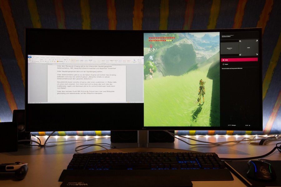 Es reagiert im Gegensatz zum OSD des LG 34UM95 sehr schnell und braucht auch keine Gedenksekunde, bis es erscheint. Das ist gerade bei Tests und intensiver Nutzung verschiedener Bildeingänge und Modi ein gewaltiger Vorteil.