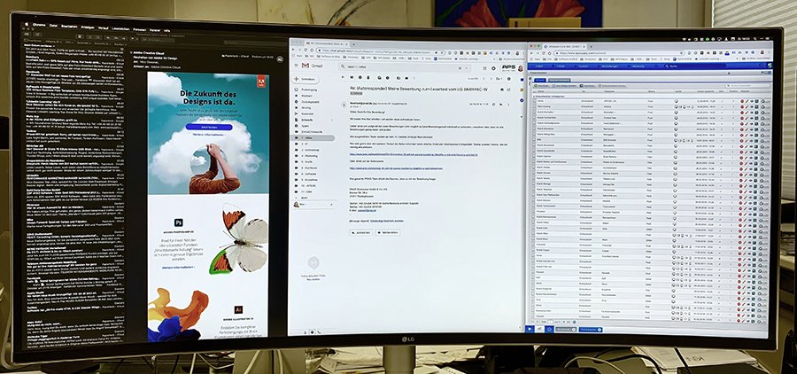 Manchmal ist ja der erste Eindruck entscheidend, und da konnte der LG 38WK95-C bei Nico Gessner richtig überzeugen: „Wow, Wahnsinn, krass! Dann erst mal ein Lachen. Solch einen ersten Eindruck hatte ich seit meinem 30″ großen Apple-Cinema-Display 2005 nicht mehr. Der LG ist ein Gigant mit einer tollen Auflösung, die mir in meinem Arbeitsalltag noch einiges an Freude bereiten dürfte. Aber endlich mal wieder ein mattes Panel. Meine Gebete wurden erhört, danke!“