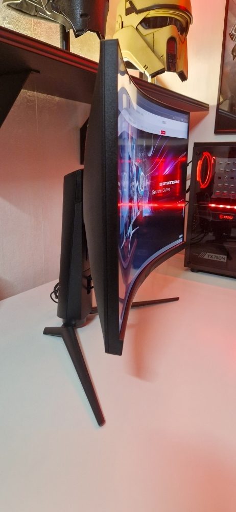 Die 1000-R-Krümmung soll ja für ein immersives Spielgefühl sorgen und macht bei der ersten Betrachtung einen guten Eindruck. Ich bin gespannt, wie sich die Wölbung in Spielen anfühlen wird.