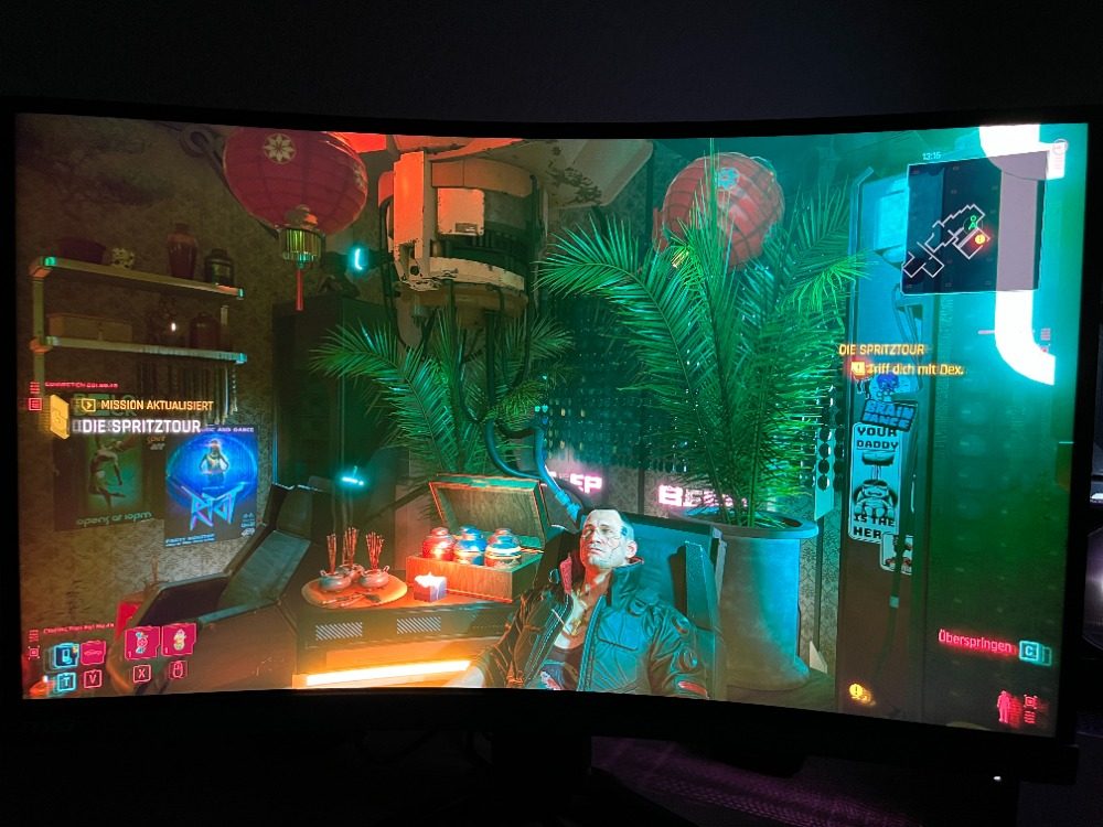In Cyberpunk 2077 kam das Display des MSI MPG Artymis 273CQRXDE-QD richtig gut zur Geltung. Das Game ist ja per se schon farbenfroh, und auf diesem Monitor sah es noch mal ein gutes Stück besser aus als auf meinem bisherigen Display. Night City rockt auf dem Modell richtig.