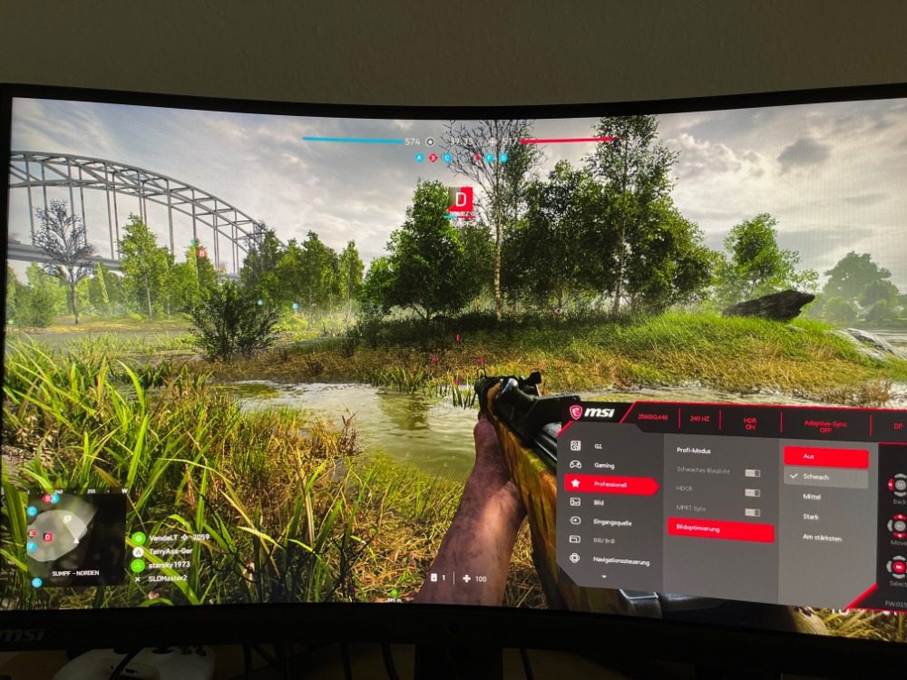 Positiv überrascht war ich auch von der Performance des MSI MPG Artymis 273CQRXDE-QD mit der PlayStation 5. Damit die Optik etwas schärfer aussieht, konnte ich mit der Bildverbesserung des Monitors hier nachhelfen. Bis zu den Einstellungen „Minimal“ und „Medium“ sah es top aus. Der Bildschirm hat auch sofort erkannt, dass die PlayStation 5 HDR unterstützt. Seltsamerweise hat mir das HDR auf der PlayStation 5 im Gegensatz zum PC ganz gut gefallen. Hier sah es bezüglich Kontrast und Farben irgendwie besser aus.