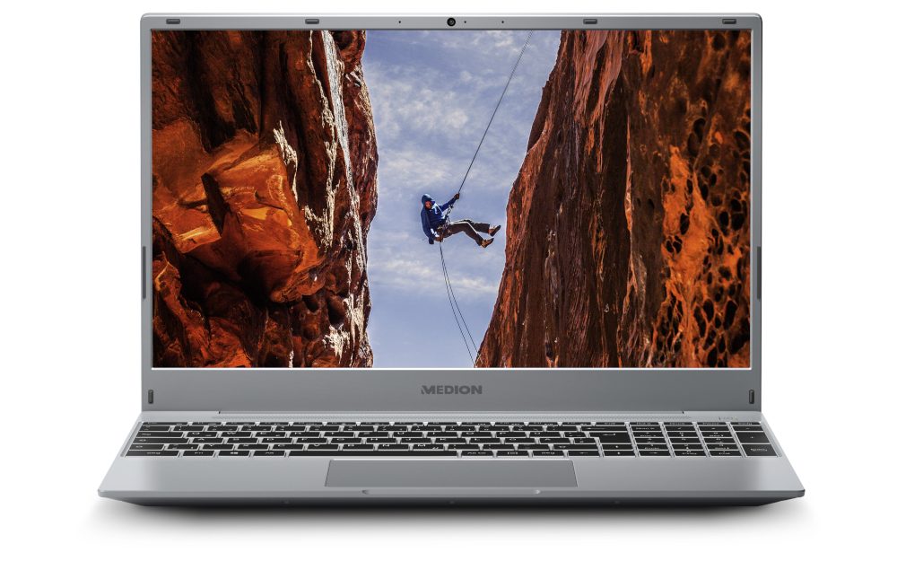 Der Medion Akoya E15411 wiegt inklusive Akku 1,78 kg, kommt mit drei Jahren Garantie, hat eine Oberseite aus Aluminium und ist bei ALDI Nord, ALDI Süd sowie im ALDI-Onlineshop verfügbar.