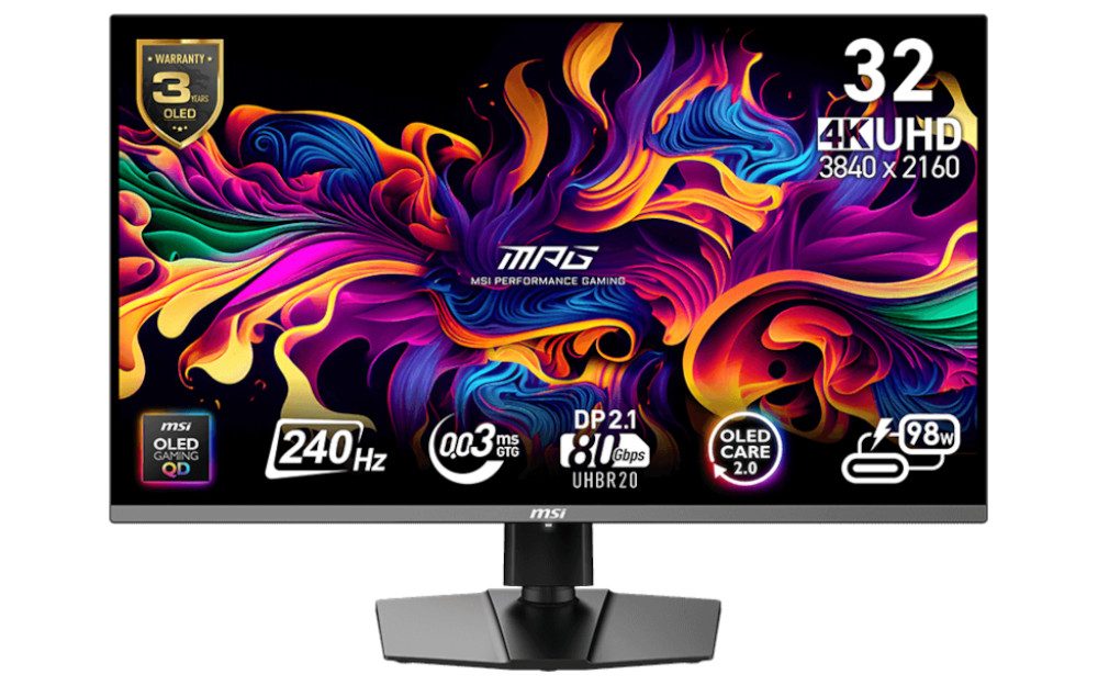 MSI hat im Rahmen einer englischen Pressemitteilung weitere Informationen zum MPG 322URX verkündet bzw. manch eine Vermutung bestätigt. Das Gerät wartet demnach mit G-Sync-kompatiblem Adaptive Sync, einem lüfterlosen Custom-Heatsink und drei Jahren Garantie samt Burn-in-Abdeckung auf. Auch OLED Care 2.0 ist gesichert wieder am Start, also diverse Maßnahmen gegen Einbrenneffekte.