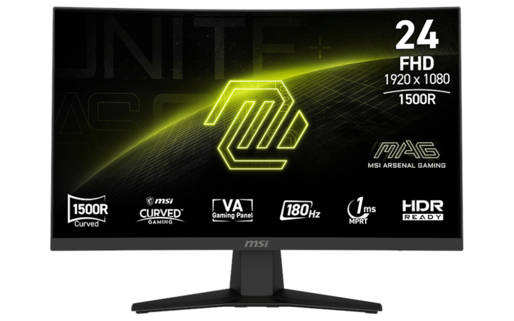 MSI listet auf seiner Website einen neuen Gaming-Bildschirm namens MAG 244C, der mutmaßlich in sehr günstigen Preisgefilden angesiedelt werden dürfte. Es handelt sich um ein 23,6 Zoll großes VA-Gerät mit Full-HD-Auflösung (1920 x 1080 Pixel), 180 Hz Bildwiederholrate, 1500-R-Wölbung und 3000:1-Kontrast. Das Datenblatt nennt außerdem 10 Bit Farbtiefe (8 Bit + FRC), 250 cd/m² Leuchtdichte und 105 Prozent sRGB.