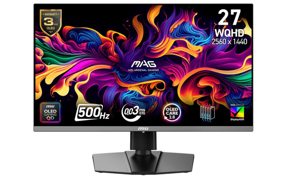 Teil des Feature-Sets sind obendrein Adaptive-Sync-Unterstützung, DisplayHDR True Black 500, ein smartes Fadenkreuz-Overlay, ein KI-gestützter Schwarzstabilisator und Bild-in-Bild- bzw. Bild-neben-Bild-Modi. An modernen Spielkonsolen kann VRR verwendet werden. Um das Risiko für Einbrenneffekte zu minimieren, kommt ein lüfterloser Custom-Heatsink zum Einsatz. Anschlussseitig werden zwei HDMI-2.1-Eingänge, ein DisplayPort 1.4a (statt 2.1a wie beim oben genannten MPG-Modell), ein Kopfhörerausgang sowie USB-C mit DisplayPort-Alternate-Modus und 15 Watt PD geboten.