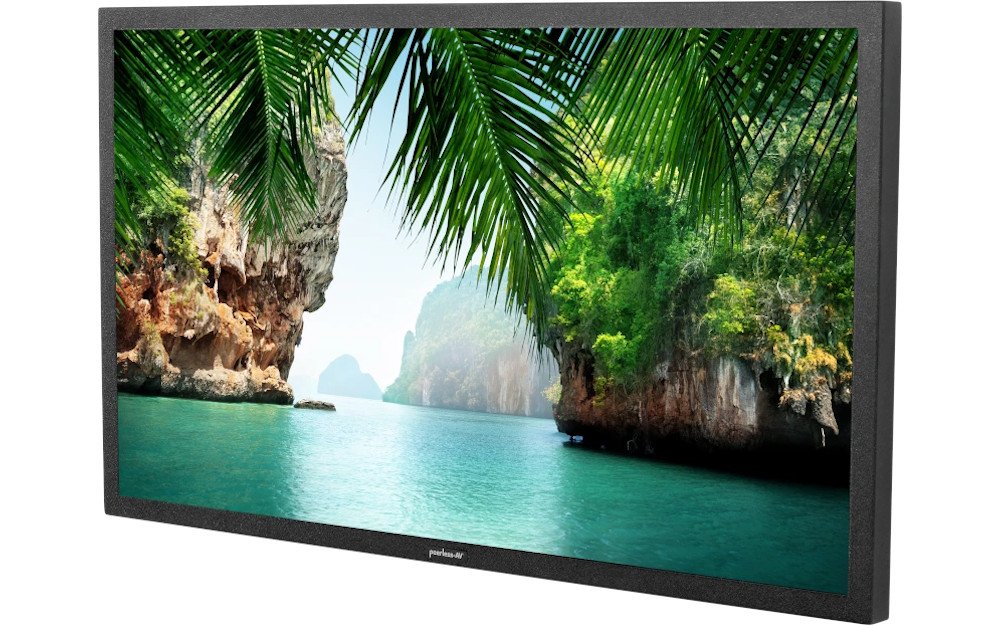 Der Fernseher verträgt Temperaturen von minus 30 bis plus 50 Grad Celsius, ist nach IP55 gegen Staub und Strahlwasser geschützt und hat ein solides Aluminiumgehäuse. Unter den Anschlüssen finden sich VGA, HDMI 2.0 (3 x), RCA, 3,5-mm-Klinke, RS232 und USB. Dank High-TNI-Technologie sei laut Hersteller auch bei direkter Sonneneinstrahlung eine gute Lesbarkeit des Bildschirms gewährleistet. Integrierte Lautsprecher dienen auf Wunsch als Klanggeber.