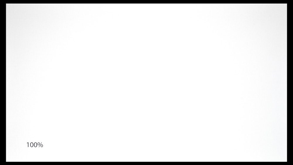 Wir untersuchen die Helligkeitsverteilung und die farbliche Homogenität mit einem 100-Prozent-Weißbild, das an neun Punkten vermessen wird. Daraus berechnen wir zunächst die Helligkeitsabweichungen von der Mitte. Die Wahrnehmungsschwelle für Helligkeitsunterschiede liegt bei etwa 10 Prozent.