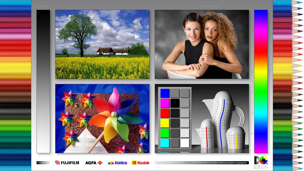 Während Blau, Magenta, Rot und Gelb überzeugen, sind Cyan und Grün ein wenig untersättigt.