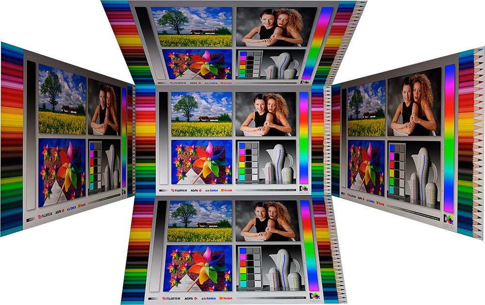 Bei Monitoren für den Grafikbereich testen wir zunächst die Farbwiedergabe in der Werkseinstellung nach dem Reset sowie – falls vorhanden – in einem sRGB- und Adobe-RGB-Modus. Anschließend wird der Proband mit Quato iColor Display kalibriert. Sofern der Bildschirm eine vollwertige Hardware-Kalibration besitzt, wird stattdessen diese in Verbindung mit der Hersteller-Software verwendet.