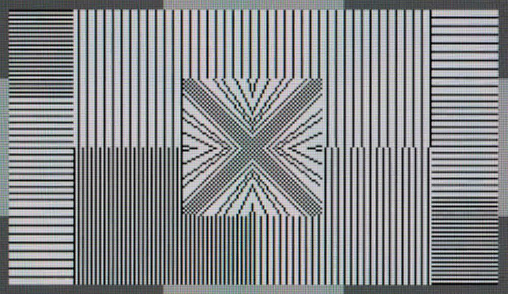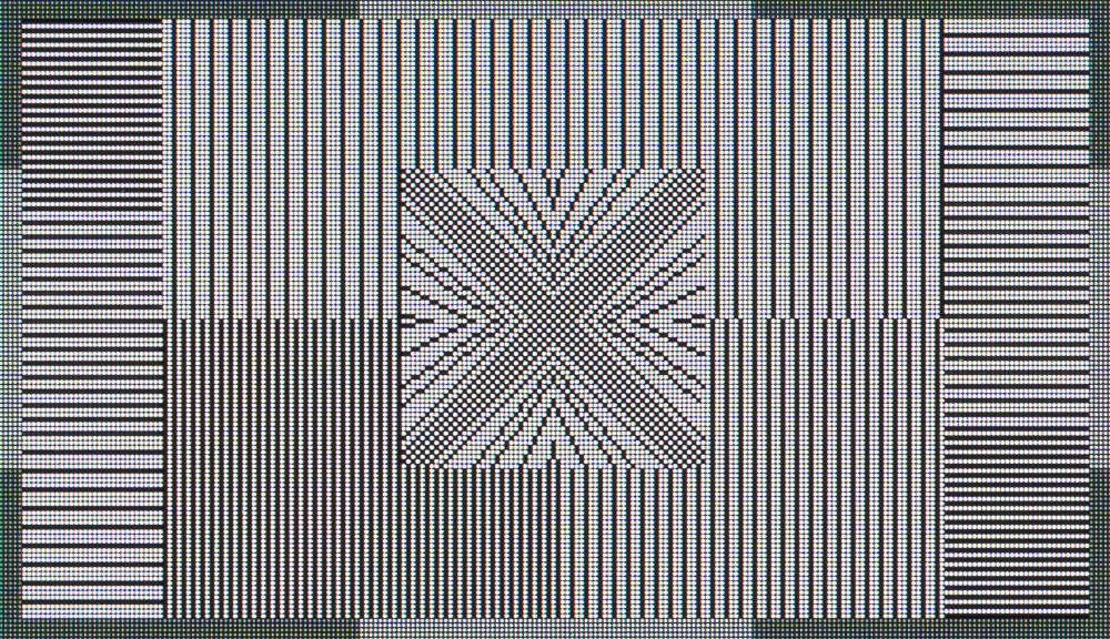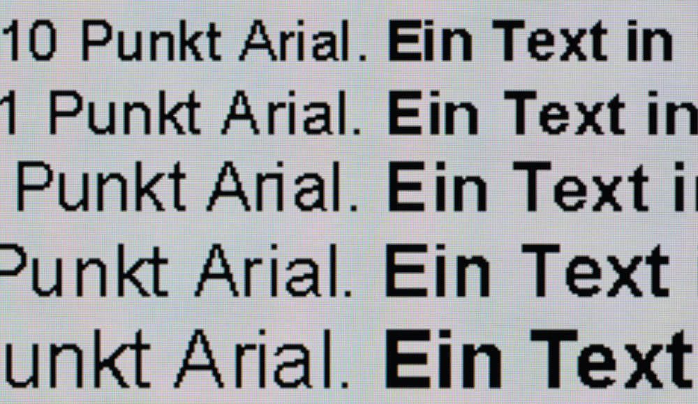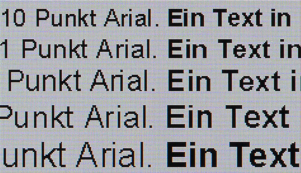 Sofern die Monitorskalierung dennoch zur Anwendung kommt, wird die notwendige Pixelvergrößerung hauptsächlich durch zusätzlich eingefügte graue Bildpunkte bewirkt. Dies führt zu etwas fetteren Konturen mit leichtem Unschärfe-Eindruck. Farbsäume treten nicht auf.