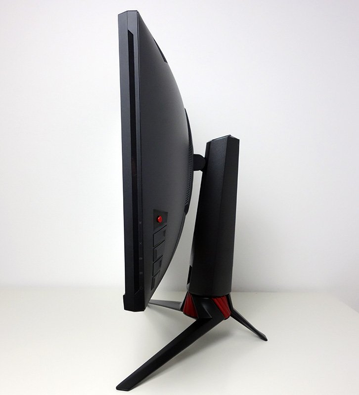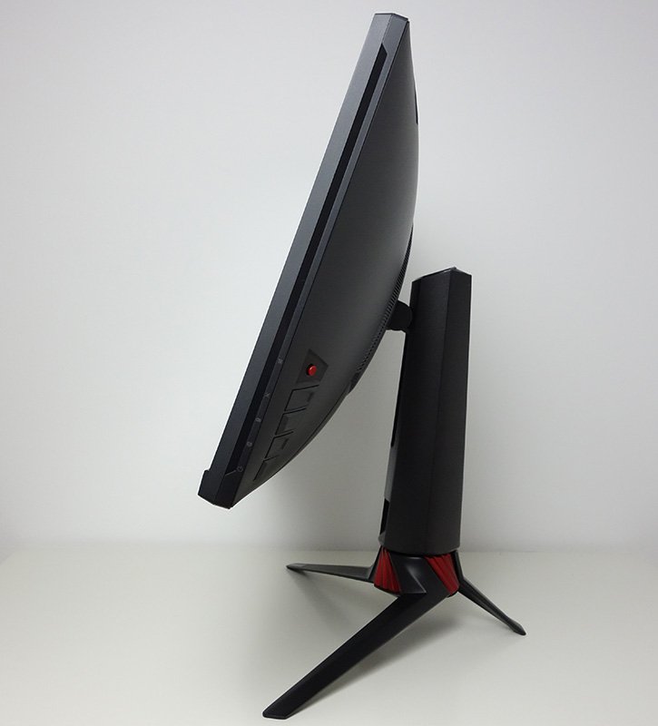 Die Display-Neigung (Tilt) soll laut Hersteller um 5 Grad nach unten und 20 Grad nach oben einstellbar sein. Nach unten sind in der Praxis allerdings nur 2,7 Grad möglich, nach oben messen wir 19,7 Grad. Auch hier arbeitet die Mechanik sehr gut. Beim XG27WQ hat ASUS auf die Pivot-Funktion verzichtet, die angesichts des Curved-Displays ohnehin wenig Sinn ergeben hätte.