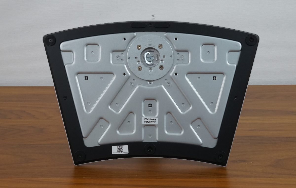 Beim Dell P3426WEB ist das Netzteil im Gehäuse integriert, einen Netzschalter besitzt der Monitor nicht. Im oberen Bereich des Rahmens befinden sich Lüftungsschlitze. Eine Erwärmung der Rückseite war jedoch selbst nach mehrstündigem Betrieb nicht feststellbar.