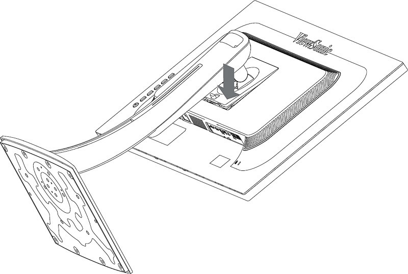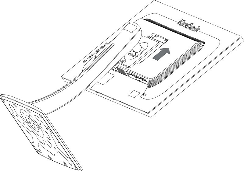 Trotz der unhandlichen Abmessungen und des stattlichen Gewichts von 12,7 kg lässt sich die Montage einfach bewerkstelligen. Standbein und Standfuß sind bereits vormontiert. Das Standbein kann jetzt auch bei ViewSonic mit einem einfachen und werkzeugfreien Klicksystem auf der Display-Rückseite eingeschoben und eingerastet werden. Das erledigt man am besten gleich im liegenden Karton. Eine entsprechende Bebilderung zum richtigen Handling ist direkt auf dem Karton aufgedruckt.
