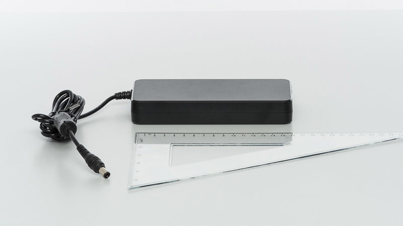 Das Netzteil hat der ViewSonic VP3881 extern ausgelagert. Zur Ableitung von Abwärme sind dennoch großzügige Lüftungsschlitze auf der Rückseite vorhanden. Bei der von uns empfohlenen Arbeitshelligkeit ist auf der Rückseite auch nur in diesem Bereich eine leichte Erwärmung spürbar. Auch das externe Netzteil wird gerade mal handwarm.