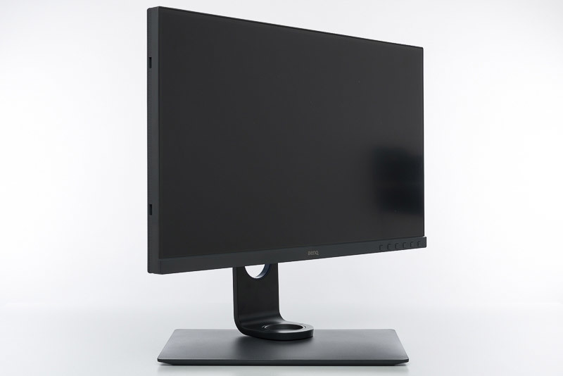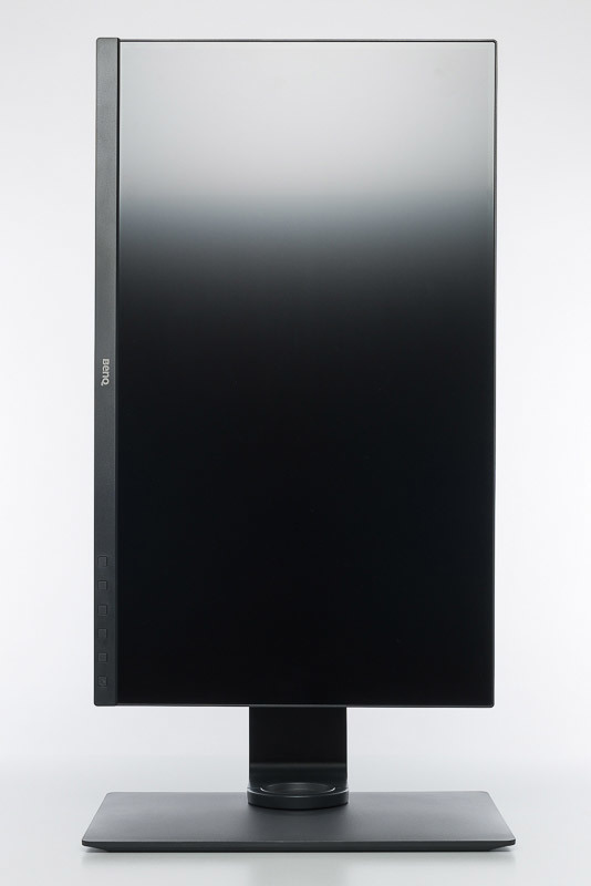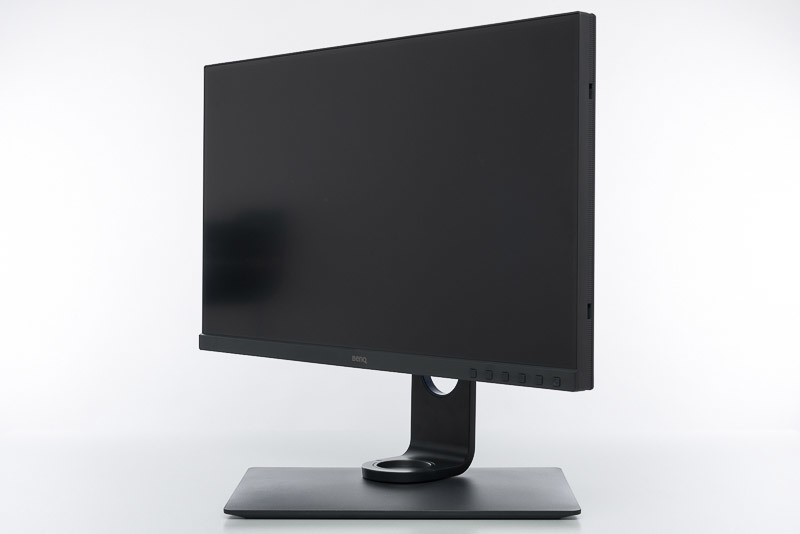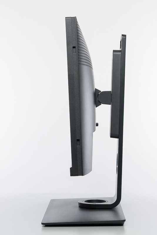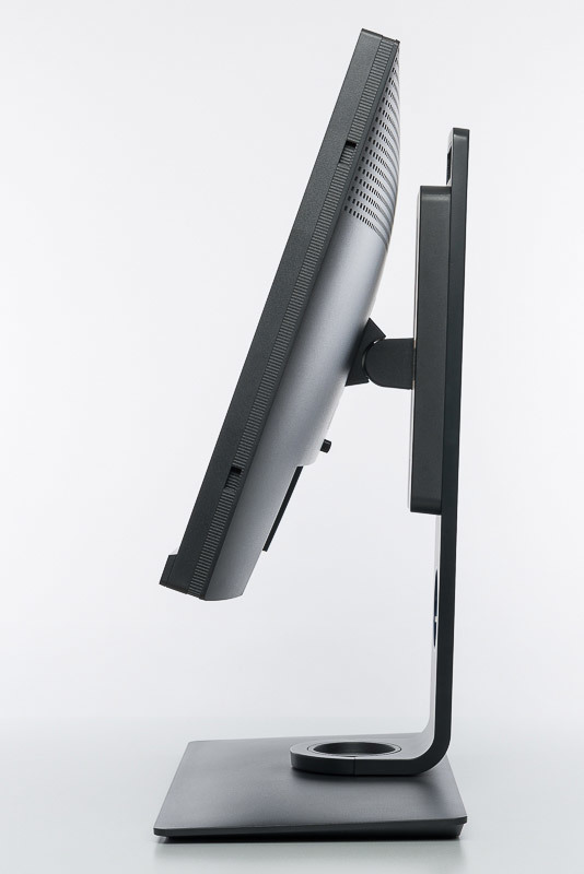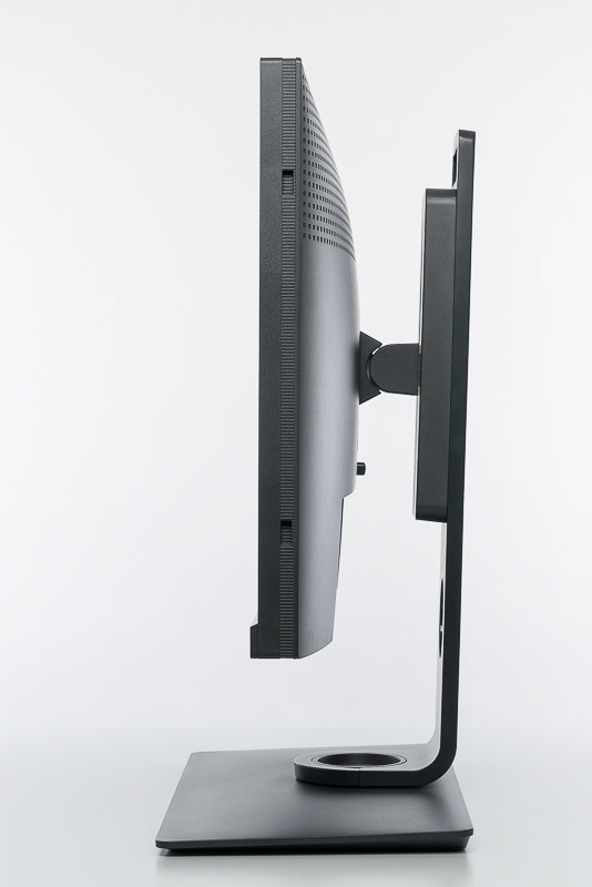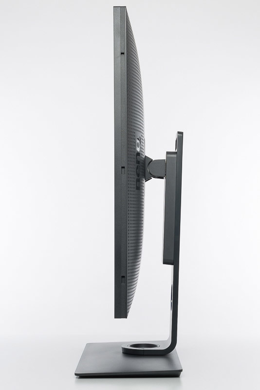 Mit 9,3 kg ist der BenQ SW271 kein Leichtgewicht. Dafür machen Verarbeitung und Mechanik auch beim Betätigen der Ergonomiefunktionen einen sehr soliden und robusten Eindruck. Hinsichtlich Umfang wird praktisch alles geboten, was man sich wünschen kann: 15 cm Höhenverstellung, Drehung nach rechts und links um 45°, Neigung von -5° bis +20° und last but not least auch die Möglichkeit, das Display um 90° in das Hochformat zu schwenken.