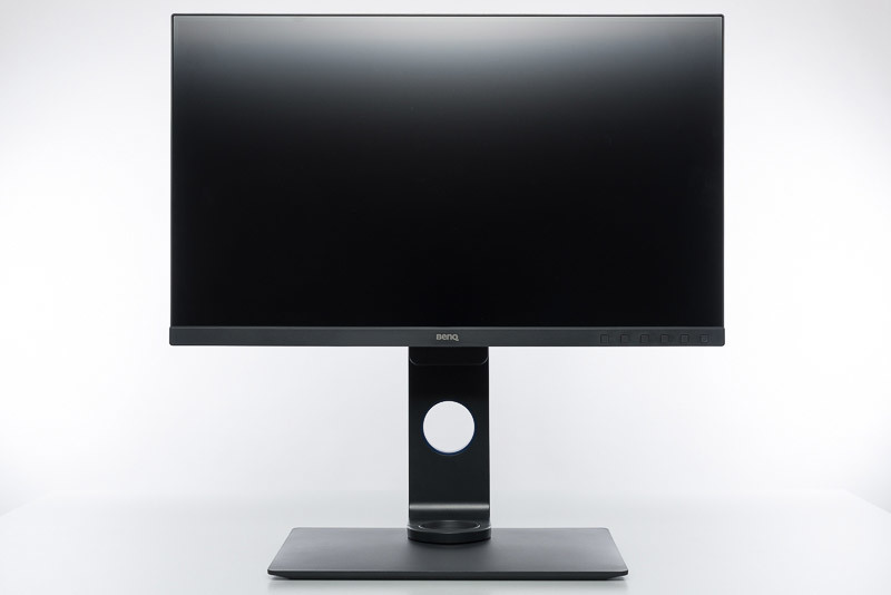 Als professioneller Grafikmonitor versucht der BenQ SW271 gar nicht erst, zierlichen Schmalrahmen-Geräten beim Design Konkurrenz zu machen. Das Gehäuse muss hier eine ausgefeilte Elektronik beherbergen und ist darauf ausgelegt, auch einen anstrengenden Arbeitstag im professionellen Umfeld auszuhalten.