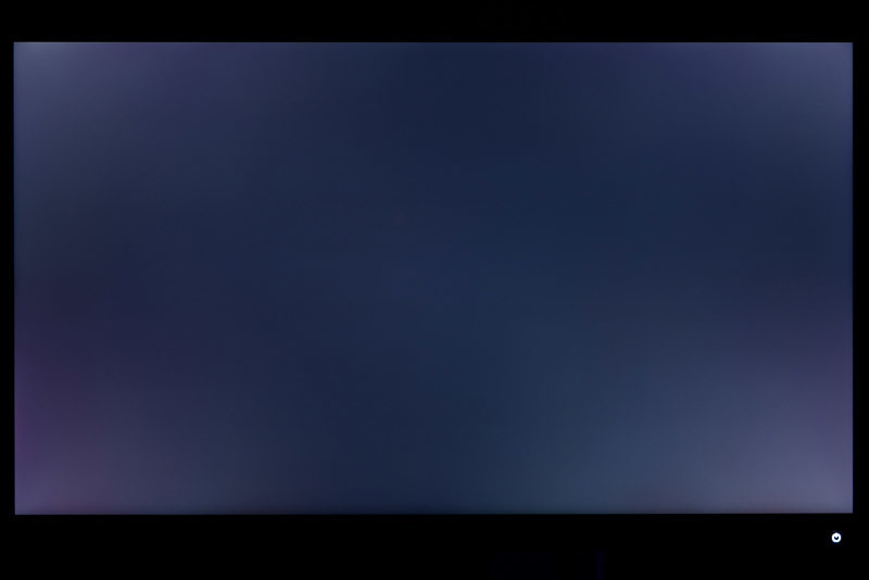 Wie im Video gut zu sehen, ist dabei auch die Blickwinkelstabilität ausgezeichnet. Selbst bei extremeren Blickwinkeln hellt sich das Bild nur geringfügig auf. Die letzte Perfektion fehlt allerdings. Wie vor allem im Bild mit verlängerter Belichtung zu erkennen, ist das Schwarzbild nicht vollständig farbneutral. An den Rändern sind rötlich-bläuliche Farbwolken zu erkennen.