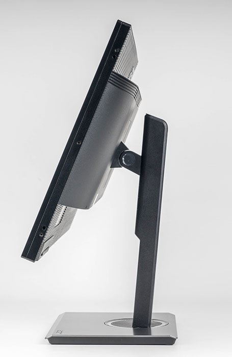 Direkt dahinter befindet sich ein Gelenk, um die Neigung des Displays verstellen zu können. Dies ist über einen Bereich von -5 Grad nach vorn und +20 Grad nach hinten möglich.