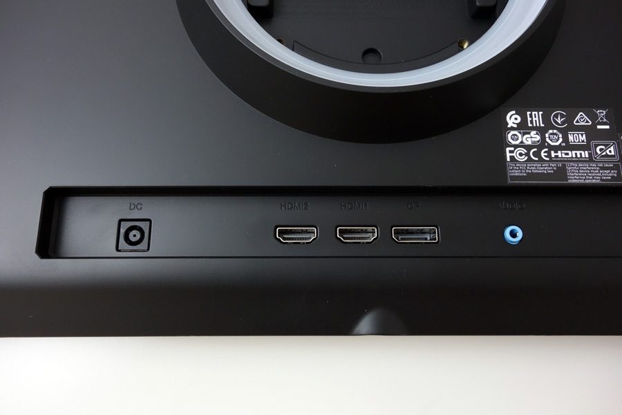 Auf Sparflamme kocht der Acer X27UX1 bei den Anschlussmöglichkeiten, doch die wichtigsten Schnittstellen sind vorhanden. Dazu zählen ein DisplayPort in der Version 1.4 und zwei HDMI-Eingänge mit Version 2.1, womit sich der Gaming-Monitor auch für Konsolenspieler gut einsetzen lässt. Zusätzlich ist ein 3,5-mm-Klinke-Kopfhörerausgang vorhanden, aber das war es dann auch schon. Selbst auf USB-Buchsen hat Acer beim X27UX1 verzichtet. Die Anschlüsse befinden sich alle auf der Gehäuserückseite und sind horizontal nach hinten ausgerichtet. Mit dieser Ausrichtung sind die Schnittstellen einfach und komfortabel erreichbar, solange der Bildschirm freistehend betrieben wird. Möchte man das Gerät hingegen an einer Wand montieren, sind die nach hinten abstehenden Kabel äußerst störend und können im ungünstigsten Fall eine Wandmontage sogar verhindern.