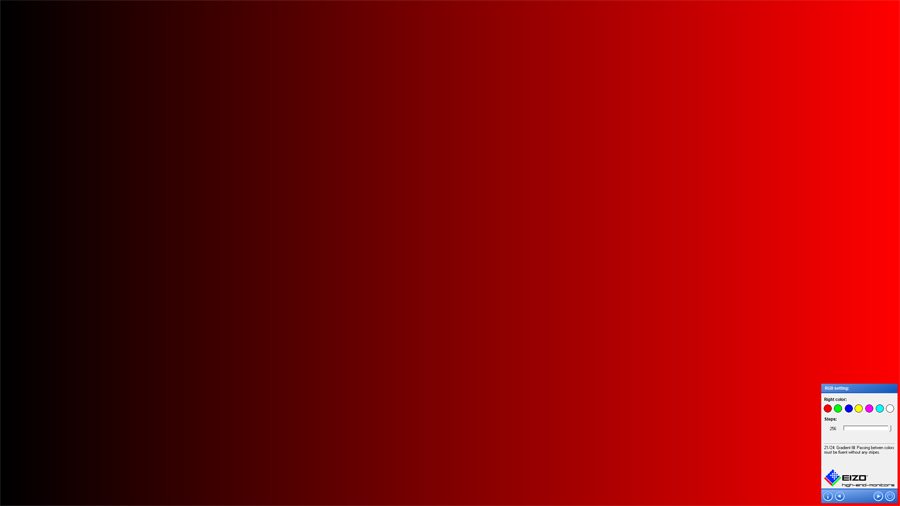 Mit den Werkseinstellungen haben wir anhand von Testbildern überprüft, wie gut der Acer X27UX1 Farbverläufe und -abstufungen darstellen kann. Der OLED-Monitor besteht den Test mit Bravour, Farbverläufe werden präzise ohne sichtbares Banding zur Anzeige gebracht, und bei den Farbabstufungen sind alle Stufen klar erkennbar.
