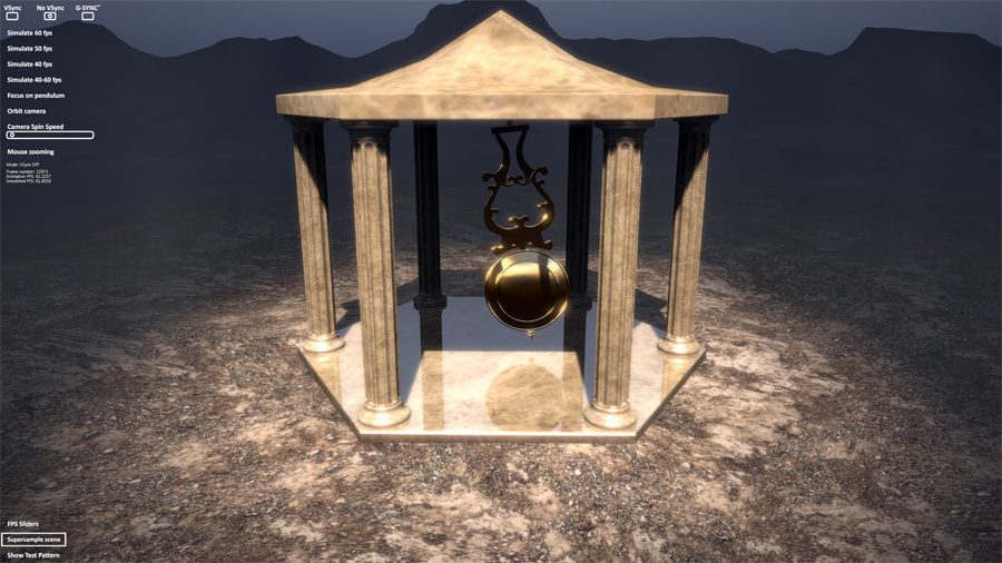 Mit der Option „Variable Refresh Rate“ unterstützt der Acer X27UX1 die dynamische Anpassung der Bildwiederholfrequenz an die vom Zuspieler oder Spiel ausgegebene Bildrate. Das hat den Vorteil, dass Tearing, also das Zerreißen des Bildes, verhindert wird. Der OLED-Monitor unterstützt dabei AMD FreeSync Premium Pro als auch NVIDIA G-Sync Compatible. Somit werden Grafikkarten beider Hersteller optimal unterstützt. Mit der von NVIDIA bereitgestellten App G-Sync Pendulum Demo haben wir verschiedene Frequenzen getestet: Die Synchronisation zwischen Bildwiederholfrequenz und Bildrate funktioniert ab 20 Hz bis zum maximalen Wert von 240 Hz.