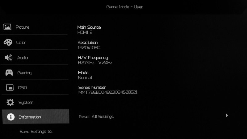 Obwohl das Datenblatt es eigentlich ausschließt, kann der Monitor laut der eigenen internen Informationsübersicht auch 24 Hz darstellen, wodurch das Gerät in diesem Bereich einen Pluspunkt sammelt. Weitere Besonderheiten bietet der Proband in diesem Bereich aber nicht. Trotz der vielen Anschlussmöglichkeiten steht zum Beispiel kein Bild-in-Bild-Modus zur Verfügung.