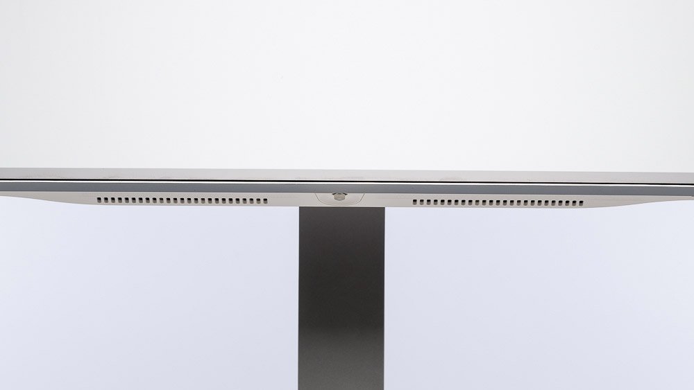 Der Panel-Rahmen und die Oberfläche des Panels sind matt und wirksam entspiegelt. Seitlich einfallendes Licht oder auch ein Betrachter mit heller Kleidung erzeugt nur schwache Reflexionen auf dem Bildschirm.