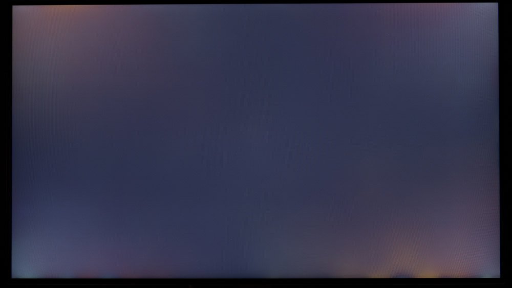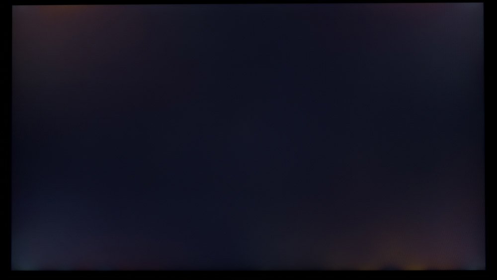 Leicht gelblich-rötliche Aufhellungen sind vor allem in den Ecken deutlich zu sehen. Sie sind auch nicht rein blickwinkelbedingt. Vor allem am Rand rechts unten sind direkte Einstrahlungen von der Hintergrundbeleuchtung zu sehen, die unter Umständen auch in den schwarzen Balken beim Betrachten von Cinemascope-Filmen negativ auffallen können. Ansonsten ist das Bild nur bei mittiger Betrachtung richtig dunkel und hellt sich bei stärkeren Blickwinkeln wie üblich über die gesamte Fläche insgesamt deutlich auf.