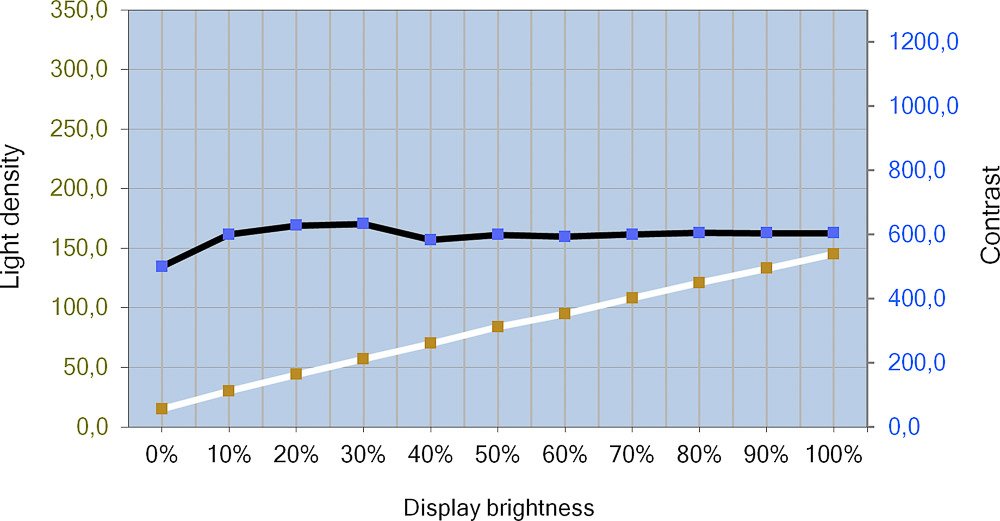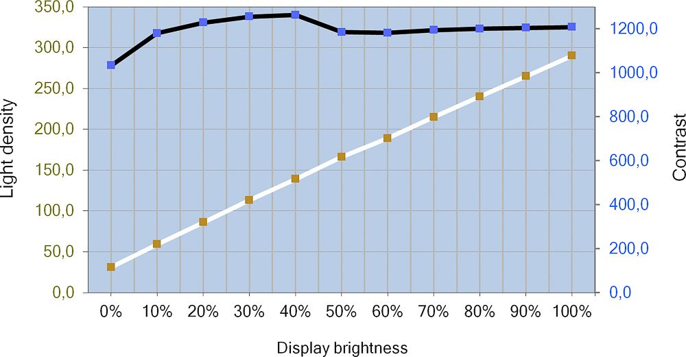 Das Kontrastverhältnis des AH-IPS-Panels gibt der Hersteller mit 1300:1 an. Gemäß unseren Messungen liegt es nach der Kalibrierung im Durchschnitt bei sehr guten 1194:1.