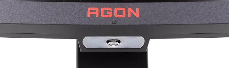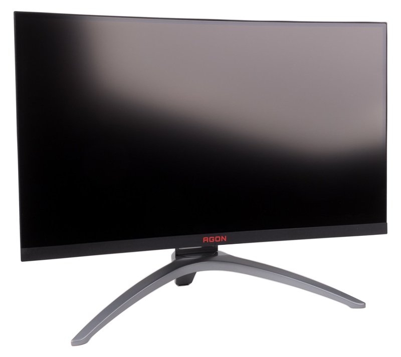 Der AOC AG273QCX setzt auf ein gebogenes Display, das in einem nur 2 bis 3 mm dicken Rahmen angebracht wurde. Im Betrieb wird der äußere Bereich von etwa 6 bis 7 mm nicht zur Bilddarstellung genutzt, wodurch er auch dann noch sehr modern wirkt. Mittig im unteren Rahmen und mit roter Schrift wurde der Name der Gaming-Serie von AOC angebracht.