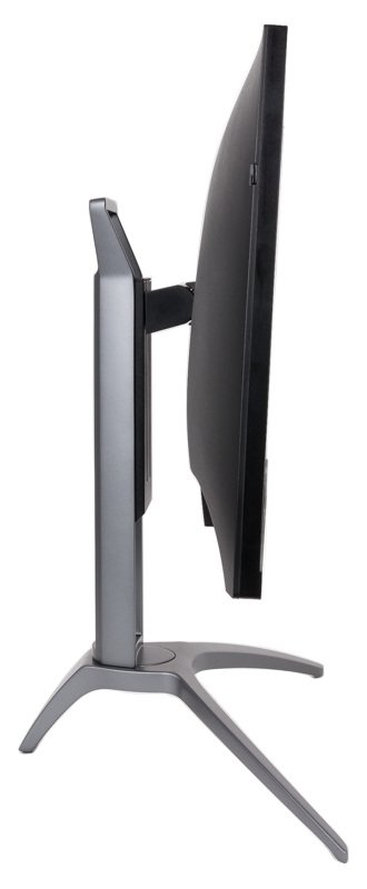 Gedreht werden kann der Monitor um 30 Grad in beide Richtungen. Auch diese Einstellung war relativ stramm. Die der Neigung ging dagegen leichter, und trotzdem hielt der Bildschirm an jeder gewünschten Position. Nach vorn kann das Gerät um 5 Grad und nach hinten um 23 Grad geneigt werden.
