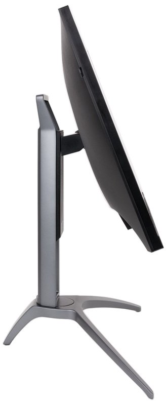 Der Monitor kann in der Höhe stufenlos verstellt werden. Die Einstellung ist recht stramm, sodass der Bildschirm an jeder gewünschten Position stehen bleibt, aber zwei Hände für die Einstellung genutzt werden müssen. In der geringsten Höhe betrug der Abstand vom Schreibtisch zur unteren Monitorkante 9,5 cm und in der höchsten Einstellung 20,5 cm. Der untere Rahmen ist zusätzlich etwa 2 cm hoch.