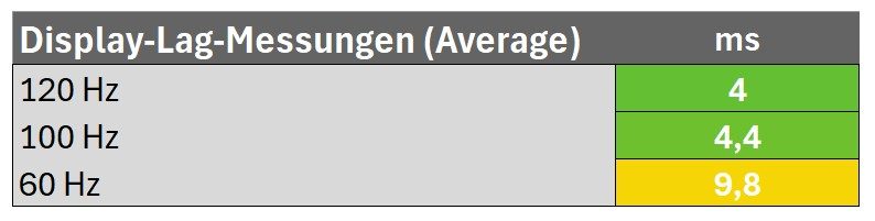 Das Reaktionsverhalten haben wir in nativer Auflösung bei 120 Hz am DisplayPort untersucht. Der Monitor wurde für die Messung auf die Werkseinstellung zurückgesetzt.