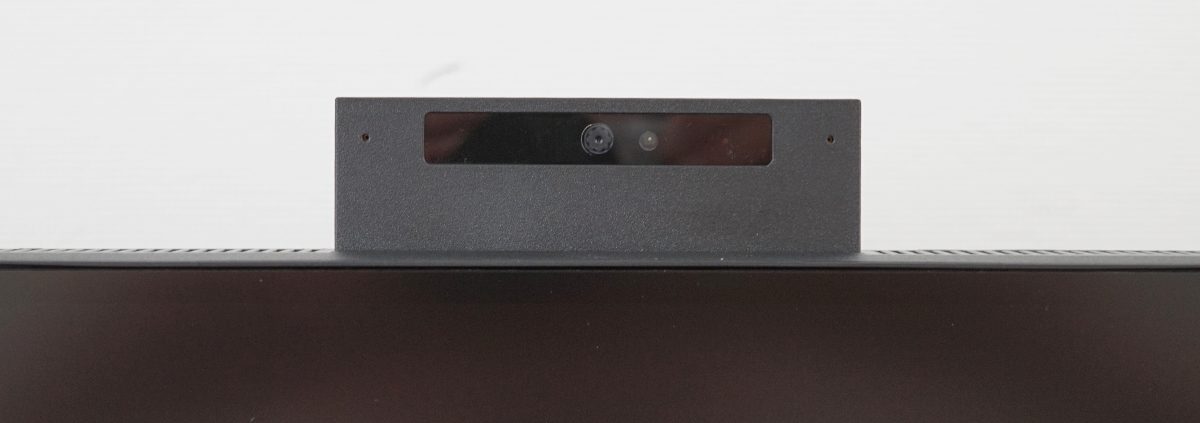 Die Webcam befindet sich auf der Oberseite des Moduls. Eine manuelle Ausrichtung der Kamera ist nicht möglich – weder die Neigung noch das Schwenken des Kameramoduls nach links oder rechts. Die Höhenverstellung des Monitors bietet jedoch genügend Spielraum, um die Webcam optimal auszurichten. Insofern müssen sich auch kleinere Personen keine Gedanken machen.