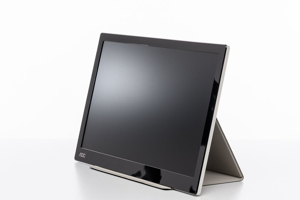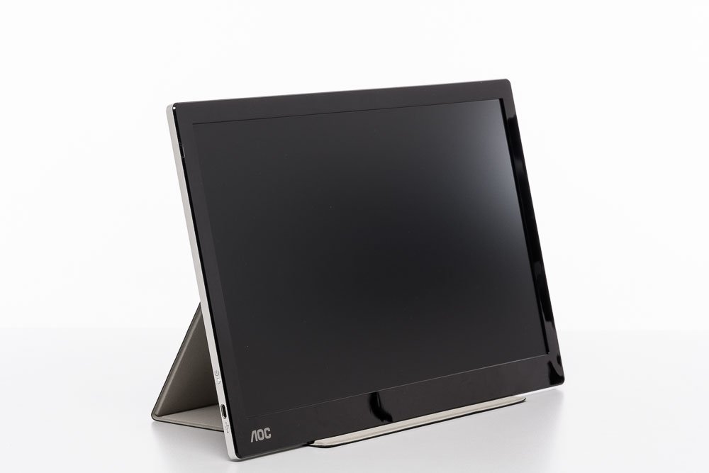 Das Display selbst ist nur 8,5 mm tief und liegt mit 800 Gramm auf 15,6 Zoll verteilt überraschend leicht in der Hand. Der Rahmen ist aus einer Metalllegierung und soll laut AOC daher besonders robust sein. So richtig spüren kann man die Wertigkeit in der Hand allerdings nicht. Das mag rein subjektiv so sein, weil das Gerät sich so leicht anfühlt. Es hat aber bei näherem Hinsehen durchaus handfeste Gründe.