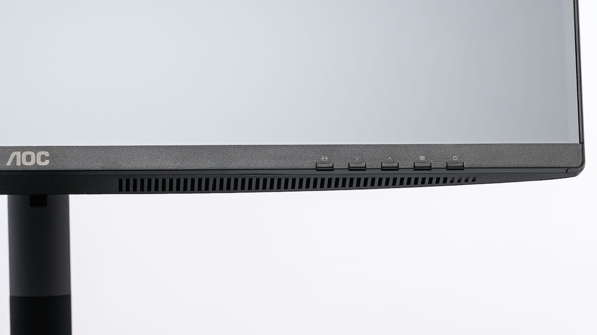 Die Bedienung erfolgt über vier Multifunktionstasten und eine separate Soft-off-Taste, die rechts an der Vorderseite des Rahmens angeordnet sind. Die Tasten verfügen über einen klar definierten Druckpunkt und sind ausreichend voneinander abgesetzt. Haptik und Geräuschentwicklung bewegen sich insgesamt auf einem für diese Preisklasse angemessenen Niveau.