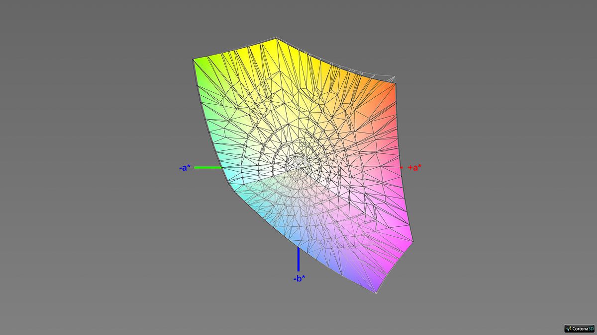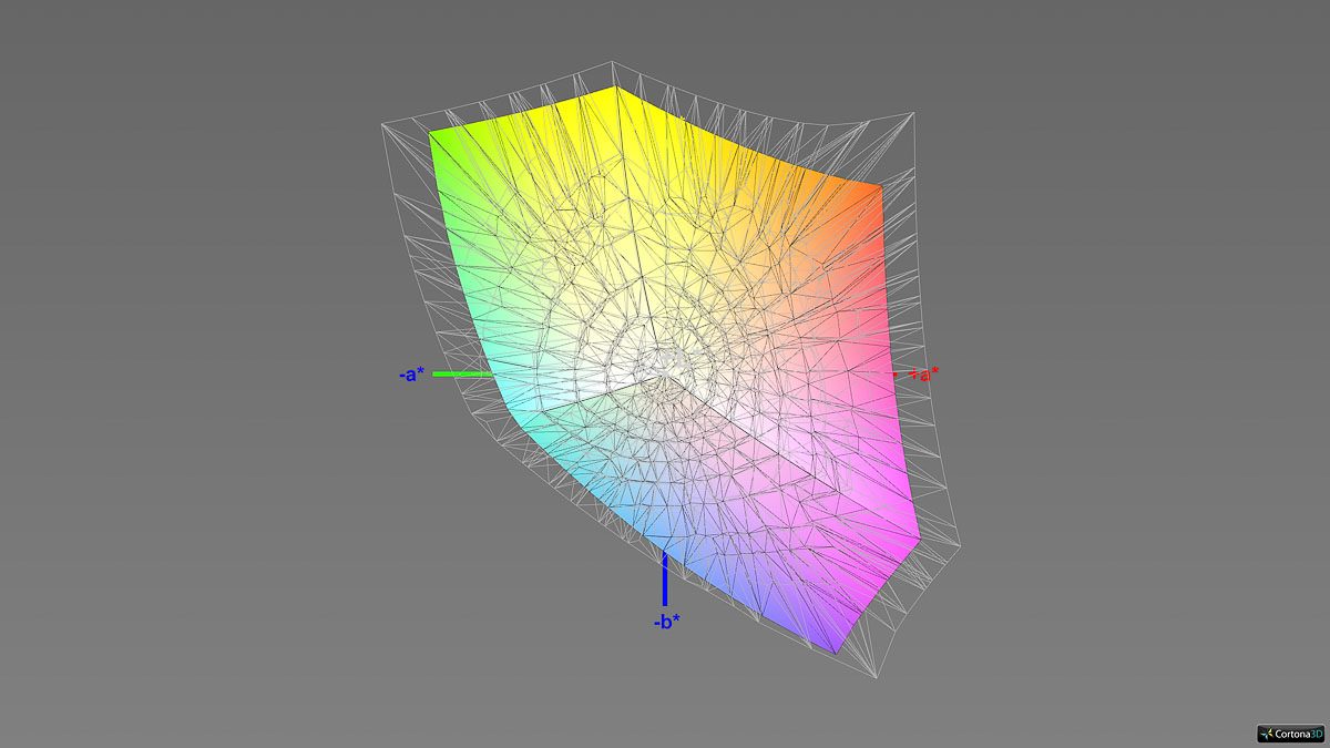 Unsere Messungen zur Graubalance ab Werk bestätigen den positiven subjektiven Eindruck. Abgesehen davon, dass die Farbtemperatur mit rund 7700 K sehr kühl auffällt und das Gamma mit einem Durchschnitt von 2,26 etwas zu hoch ist, liegen die Messwerte auf dem Niveau eines Grafikmonitors. Das Gamma verläuft dabei sehr linear.