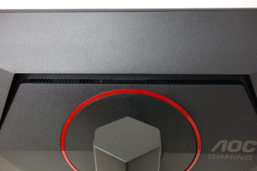 Der AOC U27G4R hat ein intern verbautes Netzteil, wodurch die Abwärme der Spannungswandler nach außen geleitet werden muss. Dies wird durch Belüftungsöffnungen auf der Gehäuserückseite bewerkstelligt. Das Konzept ist schön umgesetzt, denn die Öffnungen befinden sich etwas vertieft im Gehäuse und fallen so kaum auf.