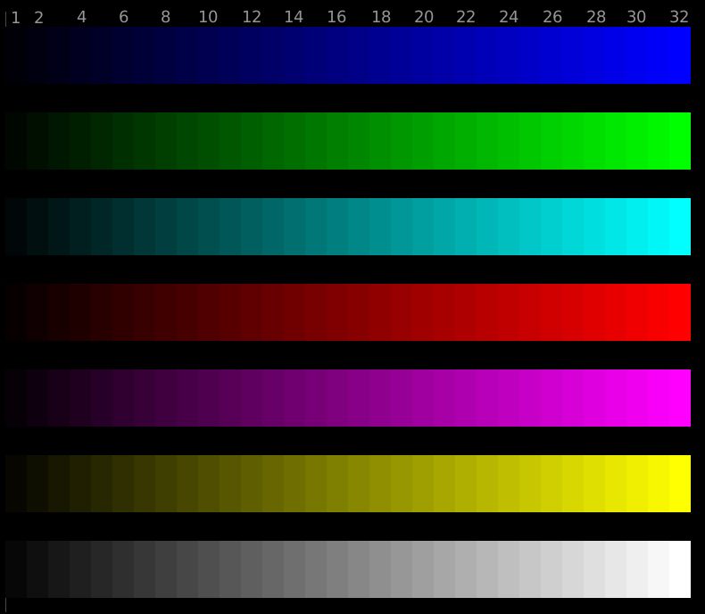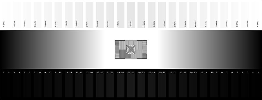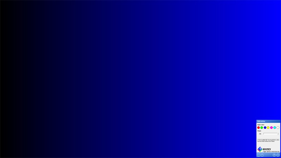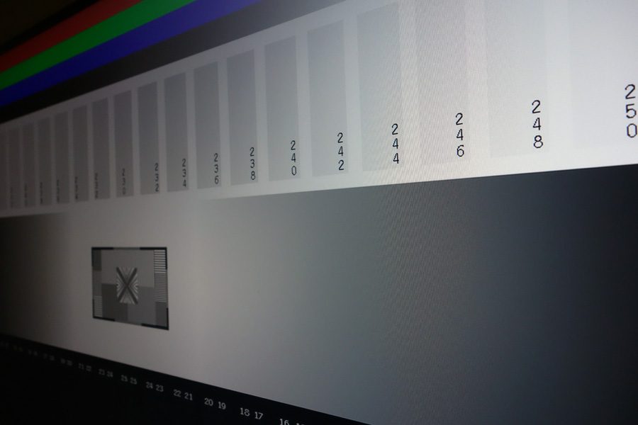 Mit den Werkseinstellungen lassen sich auf unserem Testbild Schwarzabstufungen ab Stufe 6 erkennen. Keiner der vorhandenen Spielmodi kann dieses Ergebnis verbessern, sehr wohl aber die Option „Schwarz-Steuerung“. Sie ist werkseitig auf 0 eingestellt und lässt sich in Einser-Schritten auf 20 erhöhen. Mit dem maximal einstellbaren Wert ist es möglich, alle Schwarzabstufungen auf unserem Testbild sichtbar zu machen – allerdings auch mit gravierend nachteiliger Auswirkung auf Farbverläufe. Denn der dunkle Farbverlauf ist nahezu nicht mehr und stattdessen eine harte Kante vorhanden. Um dies zu verhindern, darf der Wert der Schwarz-Steuerung maximal auf 6 erhöht werden. Dies stellt aber einen guten Kompromiss dar, denn Schwarzabstufungen sind so immerhin ab Stufe 3 erkennbar.